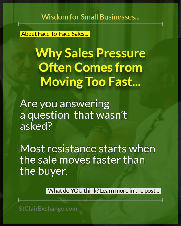 In face-to-face sales, pace is easy to misread. Sellers often assume engagement means readiness, but buyers process decisions internally before they signal it externally. When answers arrive before questions, the buyer’s sense of control erodes—even if the information is accurate and well-intended.